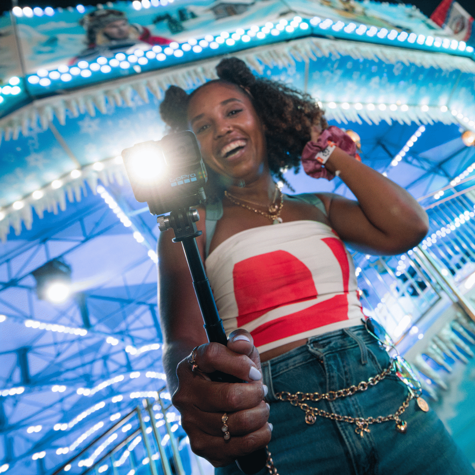 Gracias a su lente de 165°, LIT HERO puede grabar en una relación de aspecto 4:3 que ofrece un campo de visión un 25 % más alto para obtener tomas más inmersivas. Y es muy versátil: puedes activar la lente digital ultra gran angular SuperView en la aplicación Quik para grabar vídeos en 16:9 (perfectos para YouTube) o recortarlos verticalmente para las redes sociales (como TikTok).